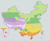 アジア大陸東部に位置する中国は、太平洋に臨んでいるため、顕著なモンスーン気候に属している。さらに国土が広大、地形が複雑で、標高差が大きいため、さまざまな気候型がある。気候帯は南から北へ順に、熱帯、亜熱帯、暖温帯、中温帯、寒温帯のほか、青海・チベット高原垂直温帯がある。