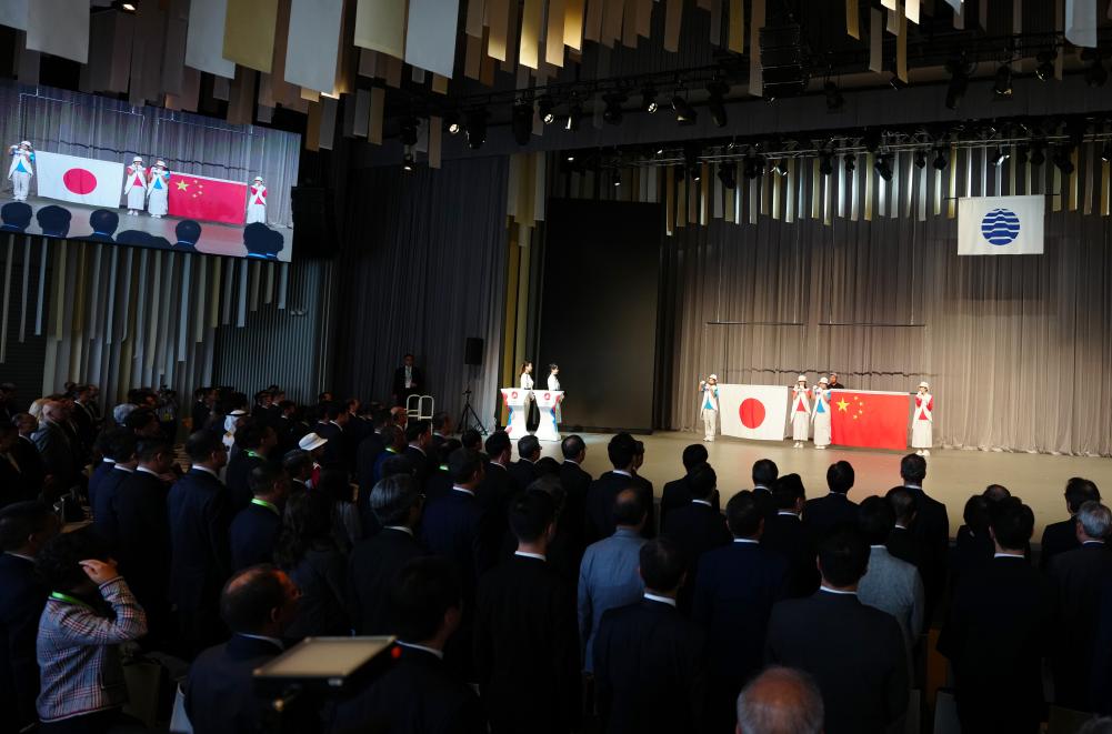 11日、万博中国ナショナルデーで行われた国旗掲揚式。(大阪=新華社記者/賈浩成)