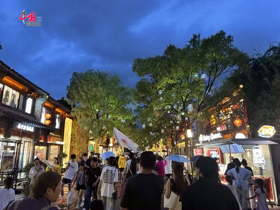 7月30日の夕方、「長江の旅 世界と手を携えて(長江之旅 世界同行)」取材チーム一行は南京の宿泊ホテルに到着後、夕食を兼ねて秦淮区中華門の東に位置し、明清時代に栄えた繁華街と周辺居住区を保存・復建した老門東に繰り出した。頭上には彩りの灯篭が柔らかく江南の街並み照らし出している。石畳の街頭には多くの若者や家族連れがウィンドーショッピングや漢服・チャイナドレスをレンタルして写真撮影を楽しんでいた。筆者も奥まった路地を歩き、静かに佇む明代の城壁を眺めていると歴史と文化の都・南京へやってきた実感が湧いてきた。