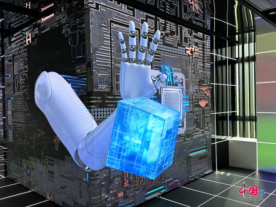 午後には普陀区の重点デジタル経済産業パーク「海納小鎮(ハイナタウン)デジタルイノベーションセンター(以下、ハイナタウン)」を訪れた。館内にはロボット製品、超薄型ガラス素材、スマート医療関連商品等が展示されており、中国経済を牽引する新たな技術やサービスが普陀区に集中するハイレベルの人材リソースと華東師範大学など産学官連携を通じて弛みなく生み出されていることがわかる。