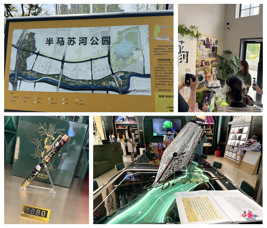 公園内にある道の駅「半馬蘇河ステーション・長風湾党群サービスセンター」では周辺の観光情報案内や読書休憩スペースの他、半馬蘇河周辺の魅力を体現したバッグや文具など「半馬蘇河(BMSH)」ブランドグッズや歴史ある上海「英雄」万年筆が販売されており、いずれもその斬新かつ洗練されたデザインが印象に残った。