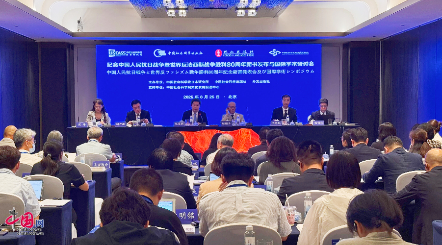 中国社会科学院日本研究所、中国社会科学出版社、外文出版社の共催による「中国人民抗日戦争及び世界反ファシズム戦争勝利80周年記念新書発表会・国際学術シンポジウム」が25日、北京で開催された。