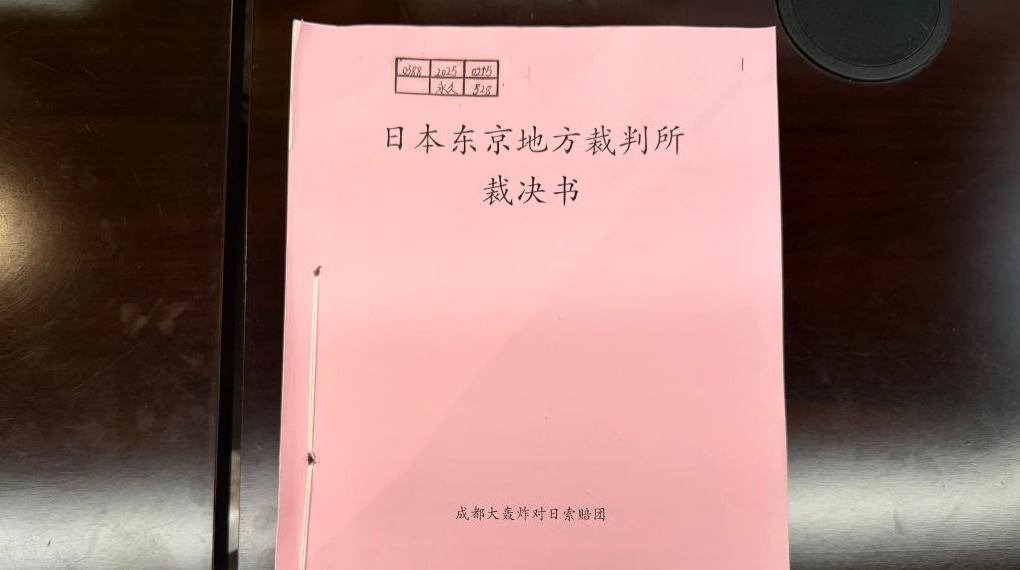 四川無差別爆撃の被害者らが東京地方裁判所で提起した対日訴訟の判決書資料。(1月8日撮影、成都=新華社記者/唐文豪)