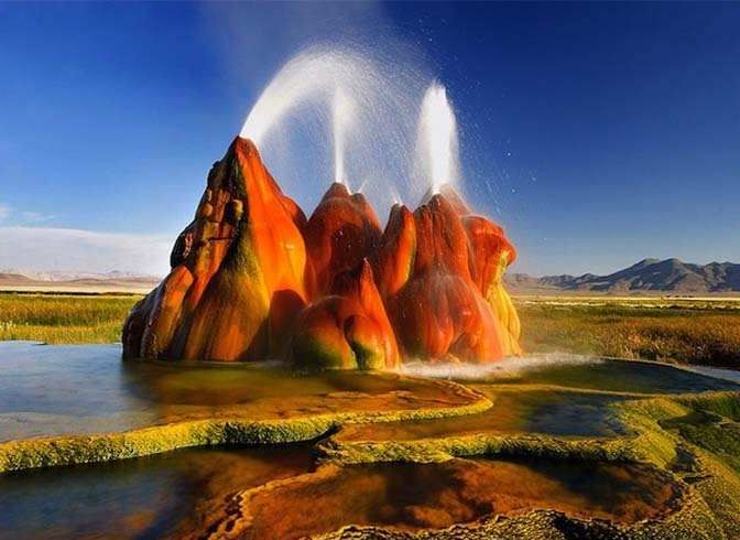 ウィキぺディアによると、Fly Geyserは米国・ネバダ州北西にある小型の間欠泉で、個人の私有地内に位置する。Fly Geyserは自然に形成されたものではなく、1964年にある地熱試験の竪坑から噴出した泉だ。熱い泉水はその後も途切れることはなく、水中の炭酸カルシウムが周囲に沈殿して小さな丘を形成した。丘の上には熱を好む藻類が生息して、丘を鮮やかな赤や緑に彩っている。環球網が伝えた。
