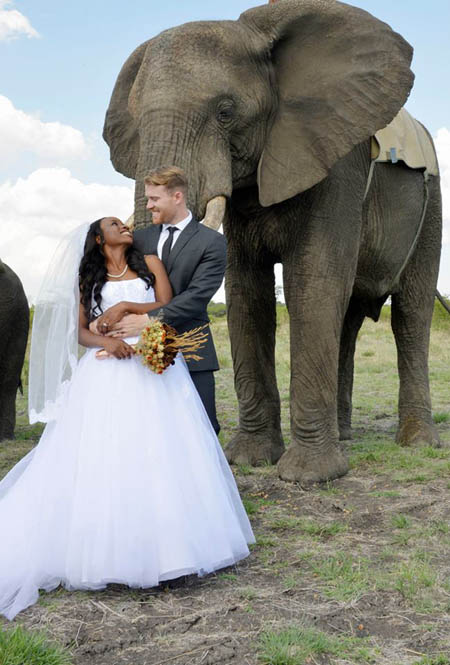 ジンバブエ ゾウの背中の上での結婚写真が人気