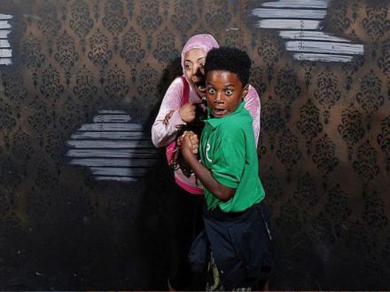 お化け屋敷の中で怖がる人たちの表情。 お化け屋敷の中で怖がる人たちの表情