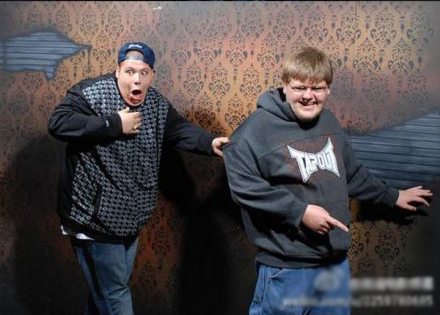 お化け屋敷の中で怖がる人たちの表情。 お化け屋敷の中で怖がる人たちの表情