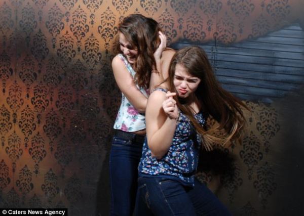 お化け屋敷の中で怖がる人たちの表情。 お化け屋敷の中で怖がる人たちの表情