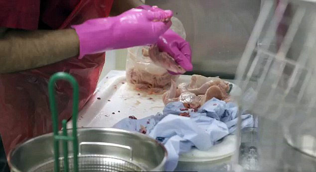 一名有35年工作经验的供应商表示,它们吃吃喝喝,生活条件很好,长到一定重量就会被宰,切成块运往肯德基各个生产线,它们很健康。