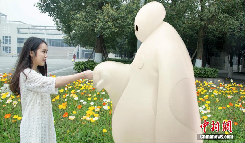 「ハイ!ぼくはベイマックス、あなたの健康をサポートするよ」。こんな言葉をかけてくれる、白くて丸々した可愛らしいケアロボット・ベイマックスは、中国の女子大生達の間で最近人気者になった。四川大学錦江学院の学生達はおもしろがって、モデルの女の子とベイマックスを「共演」させ、教室で隣の席に座るベイマックス、スクールバスの長いすに一緒に座るベイマックス、ほころび始めた花の下にたたずむベイマックス、校舎の廊下を一緒に歩くベイマックスなどの画像を作成した。ベイマックスがいつもやさしく寄り添ってくれるこの画像には心温まる癒し効果があると評判になり、公開されるやいなや微信(WeChat)のモーメンツで転送が繰り返され、あっという間に拡散した。中国新聞網が伝えた。(編集KS)