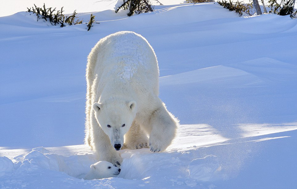ホッキョクグマの赤ちゃん、海で初のエサ探し
