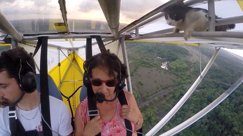 グライダーで寝ていたネコ、飛行中に目覚めて仰天