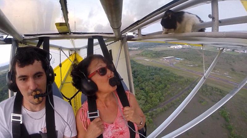 グライダーで寝ていたネコ、飛行中に目覚めて仰天