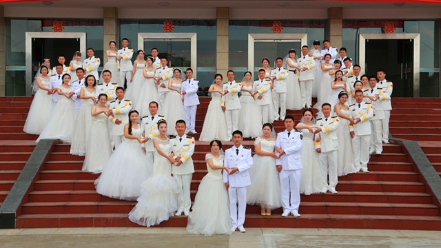東海艦隊の某駆逐艦部隊の、結婚を遅らせていた27人の兵士が9月26日、浙江省舟山市の軍港で集団結婚式を開いた。