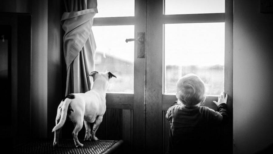 イギリスの『デイリー・メール』の9月27日の報道によると、写真家が撮った犬が子供と一緒に窓の外を眺めておじいちゃんの帰りを待つ姿がフォトコンテスト「愛という名のもとに」で高く評価された。