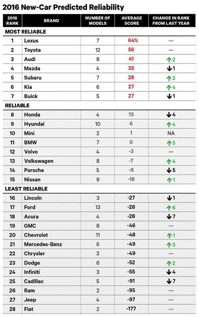 米国の自動車情報誌『オートモーティブ・ニュース』が10月20日に発表した情報によると、米国の消費者誌『コンシューマー・レポート』はこのほど、2016年度の新車品質信頼性の予測・調査報告書を発表した。そのうち、アキュラとキャデラックの下げ幅が最大となった。ガソリンの経済性を高めるギアボックスと車載情報・娯楽システムの評価が低く、順位を落とした。