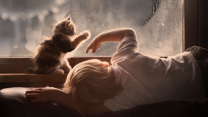 エレナ・シュミロヴァさんは撮影において素人ではなく、彼女の作品は田舎の生活の喜びに溢れ、やわらかい雰囲気がある。その中に、2人の子供が農場の動物と触れ合う心温まる写真がある。