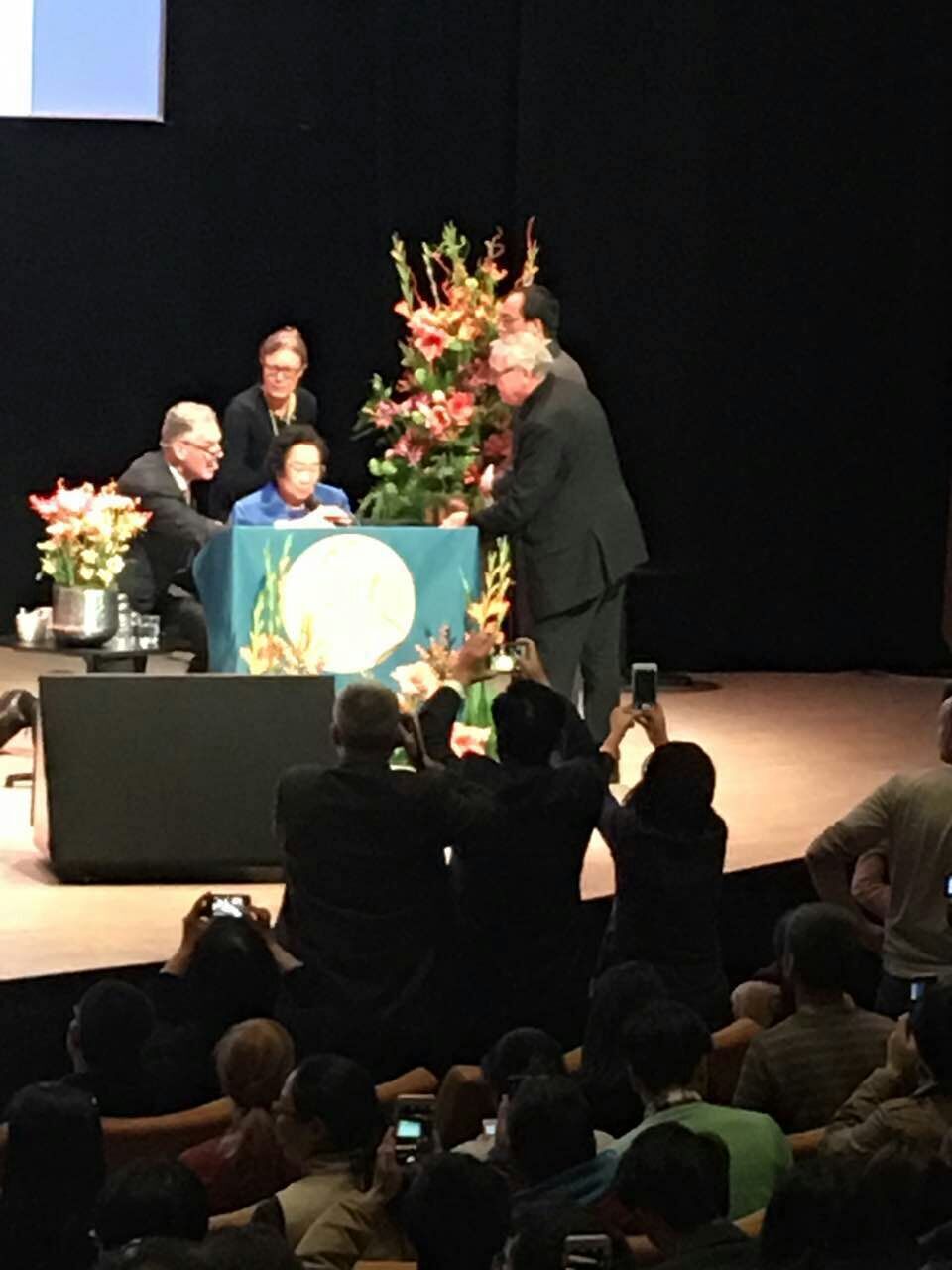 屠氏は講演の中で、ノーベル委員会による2015年ノーベル生理学医学賞の授与に感謝の意を表し、受賞は個人のみの栄誉ではなく中国人科学者への奨励であることを強調した。屠氏はまた、アーテミシニンは伝統的な漢方が世界に捧げる贈り物だと述べた。