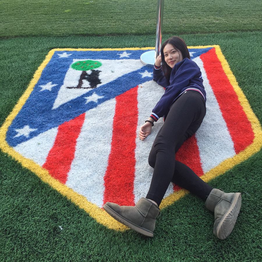 若茜很喜欢足球,当记者提起这个话题,她的话果然就多了起来。“我是在马德里读的书,大家都比较熟悉皇家马德里队(Real Madrid),但我是马德里竞技队 (Club Atlético de Madrid) 的球迷,上学时候最开心的事情就是和朋友一起去看球。也曾经幻想过能进入俱乐部工作,但这对于外国人来说是很难的事情。” 若茜还讲起一件关于看球的趣事,因为喜欢马德里竞技队的外国球迷数量远比不上喜欢皇家马德里的,她又是个东方女孩子,时常都比较显眼,经常会有当地球迷和她搭讪。有一次去卡尔德隆球场(Estadio Vicente Calderón)看球,看台上穿着球衣,围着球迷围巾的她被西班牙转播台的摄像大叔捕捉到,并给了好几秒的特写镜头,这让国内许多守着电视看转播的中国球迷都记住了她,有很长一段时间,大家都称呼她是“马竞女神”。“虽然会有点困扰,但这件事也带来了意想不到的机会。”若茜苦笑着说。国内一家著名的旅游公司找到了若茜,请她执笔编写了《马德里旅行/看球指南》。“通过这样的机会也结识了一些业内人士,编写指南这样的经历也大大锻炼了我整合资料以及与国内同事团队合作的能力。找工作应聘的时候,这份指南也算是一个不小的砝码吧。”若茜还告诉记者,对于将要去或者正在留学的学子,她的建议是一定要抓住机会,不要太武断决定一个机会的价值,你永远不会知道这个机会对你的未来会产生怎样的价值。