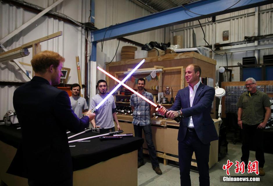 英王子が『スター・ウォーズ』制作現場を訪問 ライトセーバーで対決