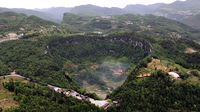 18日、新華網に掲載された航空写真がインターネットで話題になった。『無人機が撮影した武陵山の美しい古村落』と題した画像集の中にあるハート型の天坑の写真は、ネットユーザーに「大地の心」と名付けられた。