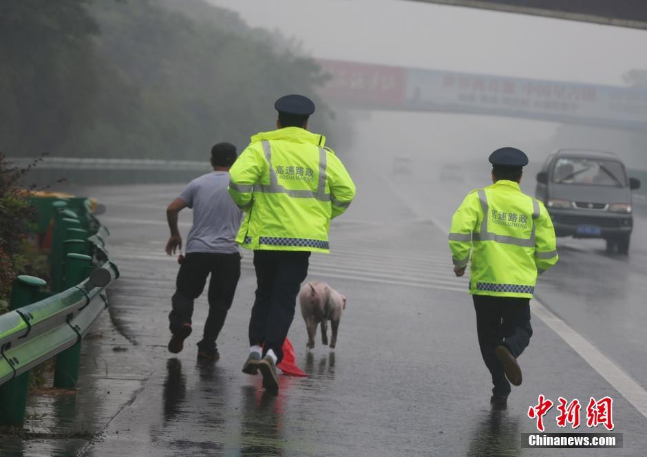 子豚が高速道路に転落 路政局職員と市民が囲んで捕獲