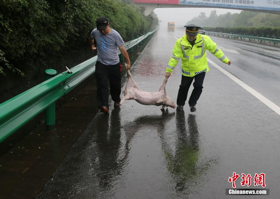 子豚が高速道路に転落 路政局職員と市民が囲んで捕獲