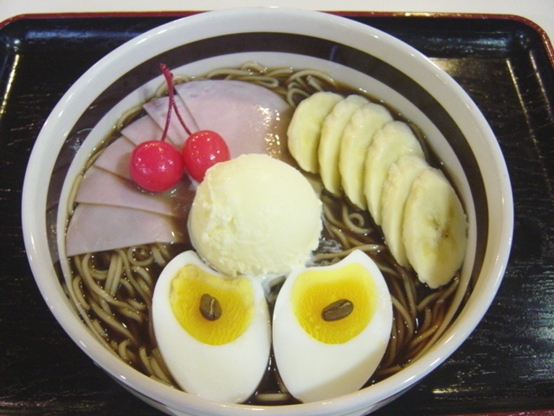 ラーメンに単にコーヒーを入れたものではない。コーヒーラーメンは、挽いたコーヒー豆を麺粉と混ぜて作った麺を使ったラーメンだ。麺そのものにコーヒーの味が漂う。さらにアイスを乗せて食べる。どんな化学反応が起こるのか、想像もつかない。