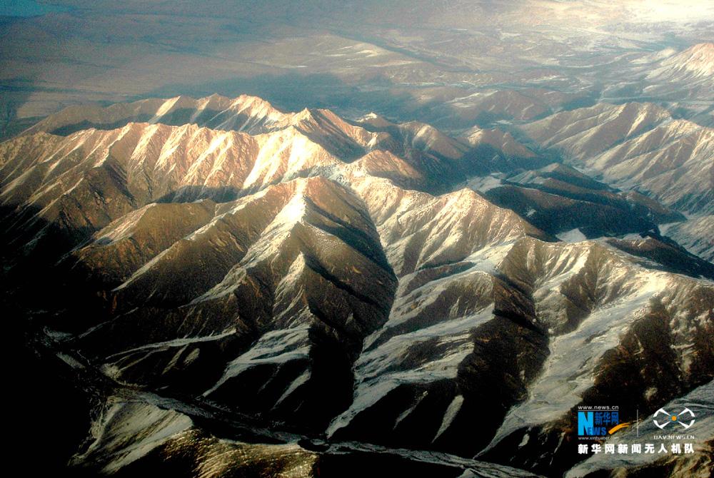 祁連山脈は、青海省北東部と甘粛省西部の境にある中国国内の主な山脈の1つである。祁連山脈には3306本、面積約2062平方キロメートルの氷河がある。写真は、新華網のドローンが撮った祁連山脈の氷河。