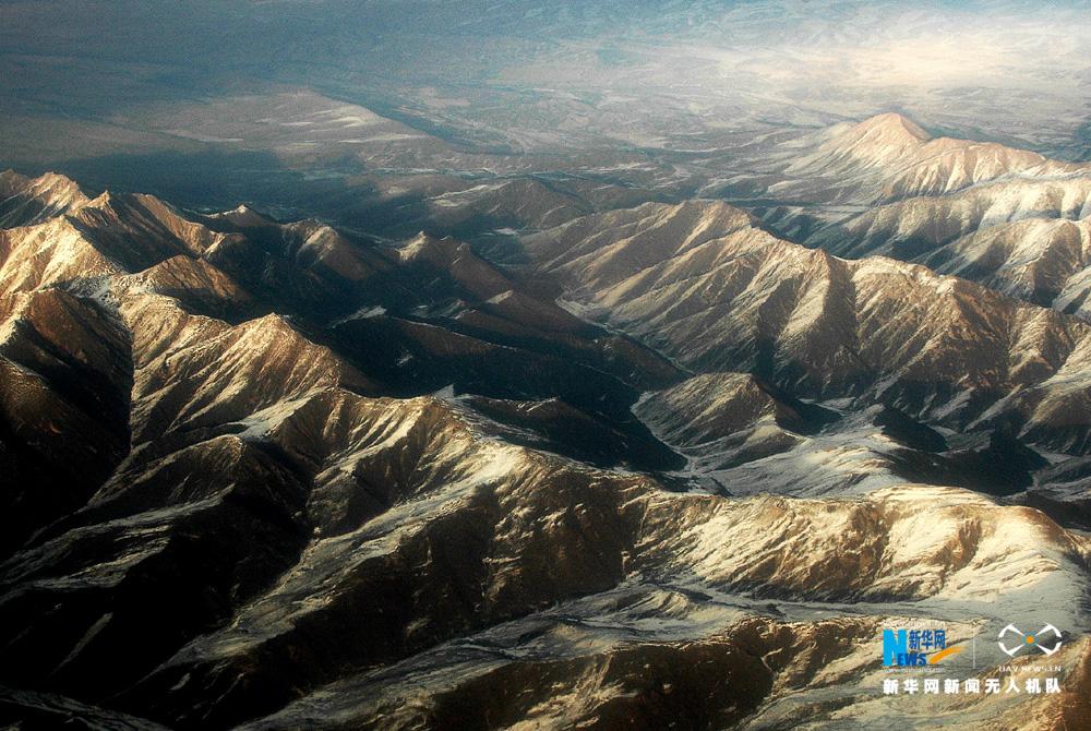 祁連山脈の氷河を空撮 神秘的で美しい