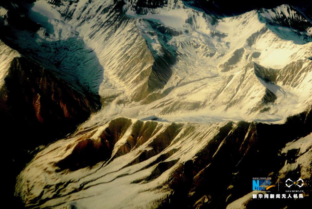 祁連山脈の氷河を空撮 神秘的で美しい