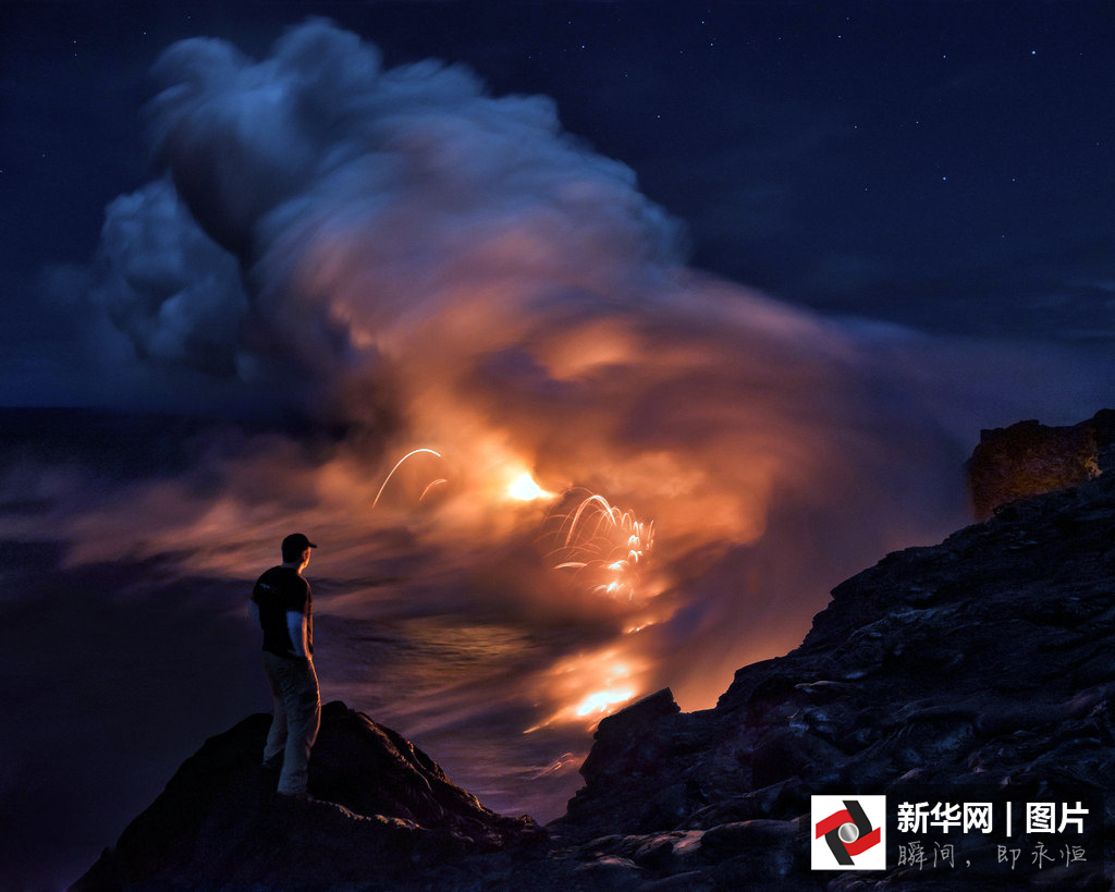 キラウエア火山、マグマが海に流れ込む衝撃的な写真