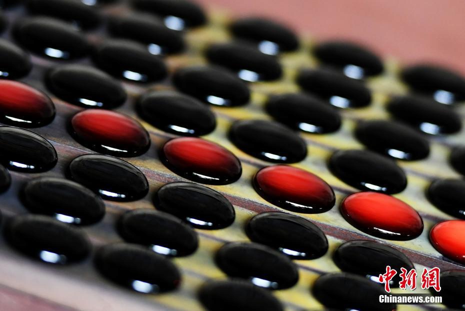 雲南省保山市の永子囲碁工場、出来上がったばかりの碁石(7月9日撮影)。永子囲碁は保山南の赤瑪瑙、黄竜玉、翡翠、琥珀などの天然素材で作られ、500年以上の歴史を持つ。古くは皇室への高級な献上品だった。永子囲碁の製造技術は雲南省無形文化遺産保護リストに登録されており、世界クラスの囲碁大会の公式用品に何度も指定されている。
