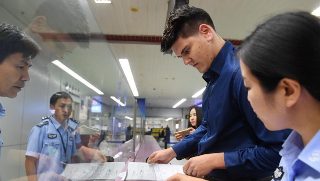 ドイツのカイザースラウテルン大学に通うドイツ人学生のラルフさんは6月25日、福州長楽国際空港の福州市公安局出入国管理所のビザ窓口で実習ビザの手続きを行った。