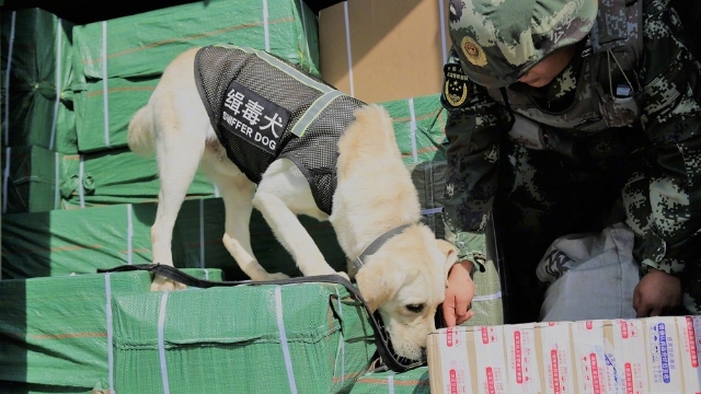 麻薬捜査の第一線で活躍する警察犬は、大きな役割を担っている。中国とミャンマーの国境に位置する江橋警察犬再訓練基地は2003年の創設以降、数百匹の警察犬の訓練を実施した。