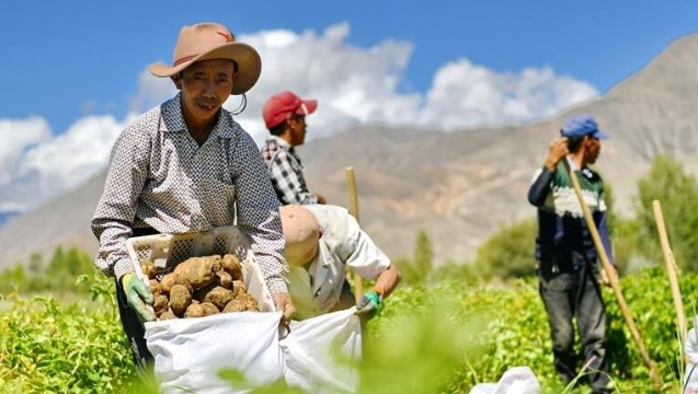 チベット自治区日喀則市桑珠孜区東嘎郷の6000ムーの畑でこのほど、ジャガイモが豊作となった。山東省青島市第8陣チベット支援幹部の支援のもと、東嘎郷は専門合作社を設立し、郷内280世帯・1048人の貧困者を合作社に組み入れ、「東嘎ジャガイモ」ブランドで有機ジャガイモ栽培を推し進め、住民の貧困脱却を後押しした。