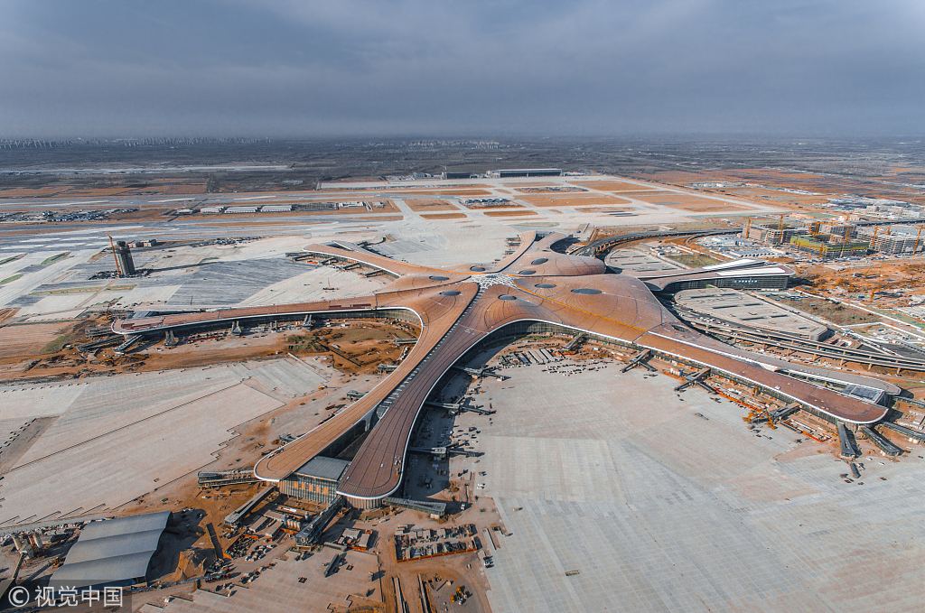 1月5日、北京大興国際空港の工事現場。主体ビルは非常に現代的なデザインである。