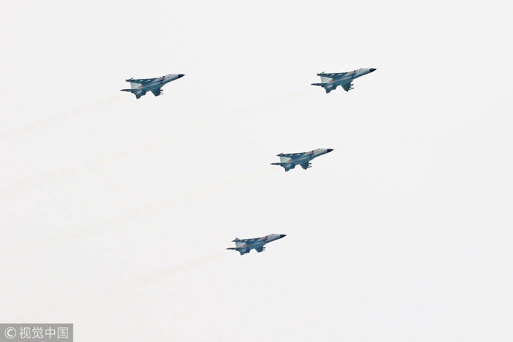 山東省煙台市 海軍航空兵のJH-7が低空編隊飛行