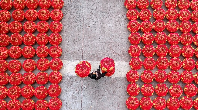 浙江省台州市 職人が春節用提灯生産に大忙し