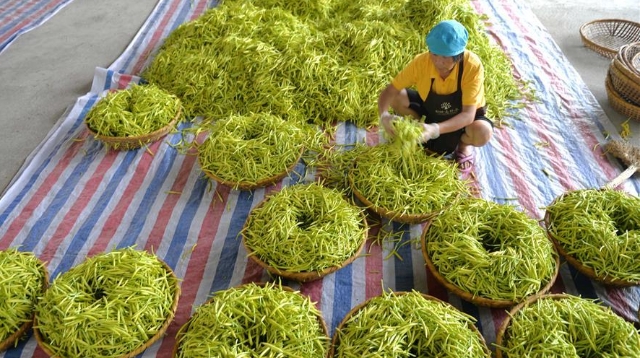 真夏になり、湖南省衡陽市祁東県でウコンカンゾウが収穫シーズンを迎え、一面のウコンカンゾウ畑で農家が慌ただしく作業している。祁東ウコンカンゾウは湖南省の国家地理的表示保護商品である。現地のウコンカンゾウ栽培の歴史は長く、県内の栽培面積は16万5000ムーに達し、地元農家の貧困脱却を後押しした。