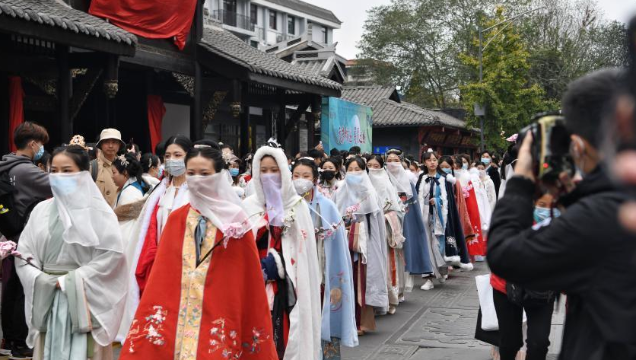 「天府の招待、美しい約束」をテーマとした漢服文化祭が11月22日、成都市の文殊坊で開幕した。大勢の漢服愛好家が様々なスタイルの伝統の漢服に身を包み文殊坊で漢服パレードを行い、漢服文化の魅力を伝えた。
