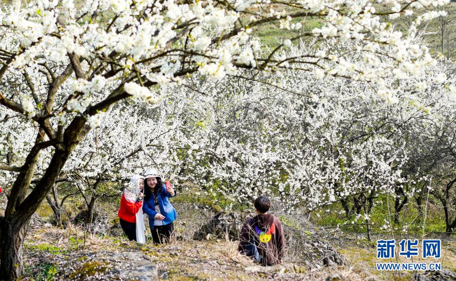 重慶 スモモの花で観光客を歓迎