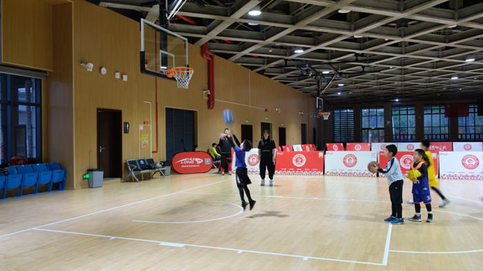 人々が3日、武漢洪山体育館でバスケットボールの練習を行った。