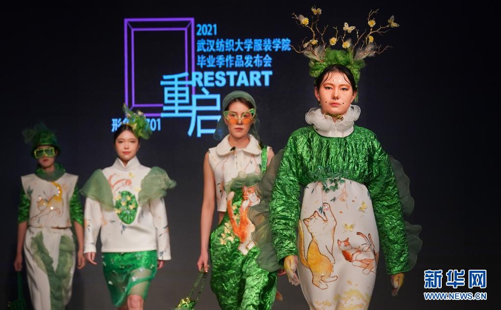 武漢紡織大学服装学院で4月12日、卒業シーズン作品発表会が開かれ、同校のキャラクターデザイン11701クラスの卒業生が「再出発」をテーマに初のショーを行った。作品はアパレル業界とファッション業界の回復と再出発をテーマとするデザインとなっている。