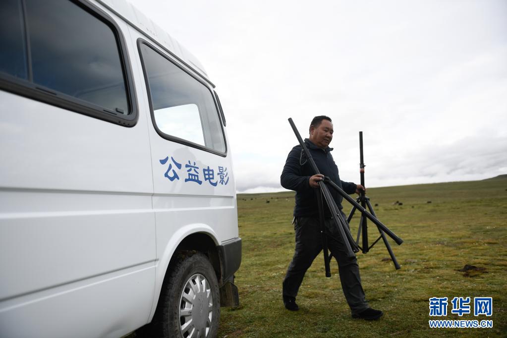 草原の公益映画放映員