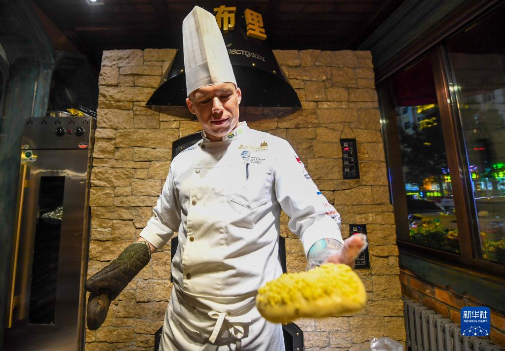 ロシア出身の今年33歳のアイダホさんは2018年から内蒙古自治区の満州里にある飲食店の厨房で働き、ロシア料理の調理を担当している。彼が作るロシアパン、ローストビーフ、チーズパンケーキなどは観光客から人気がある。