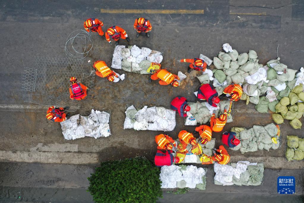 山西省の洪水と戦う人たち