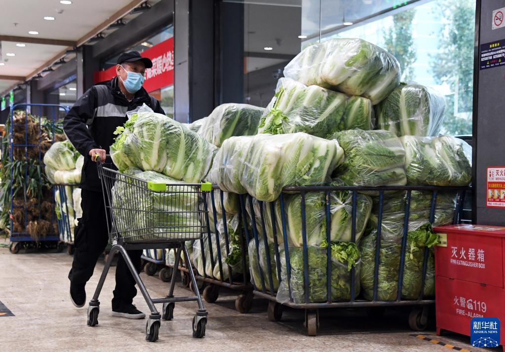 11月2日、チェーンスーパー北京超市発の各直営店に冬野菜が並んだ。冬野菜は産地直送で市場に供給される。