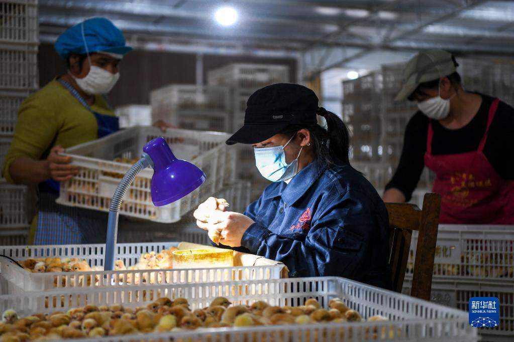 広西チワン族自治区興業県は近年、地域の優位性を生かして三黄鶏養殖産業を農村振興の突破口とし、養鶏リーディングカンパニーがモデルとなり、生産・供給・販売を一体とした経営を実現している。現在、興業県の三黄鶏出荷数は1億3000万羽前後で安定し、家禽卵生産量は4000トンに達し、三黄鶏は現地の村民を裕福にする鶏となっている。