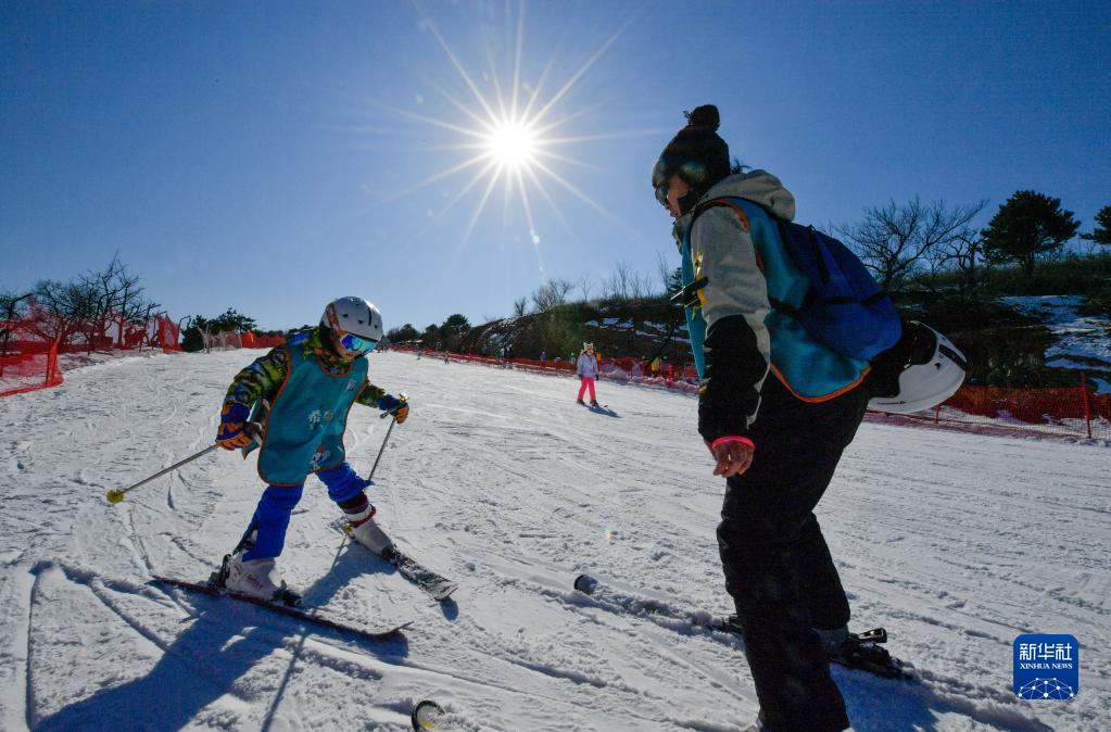 燕山麓で子供たちがスキーを楽しむ